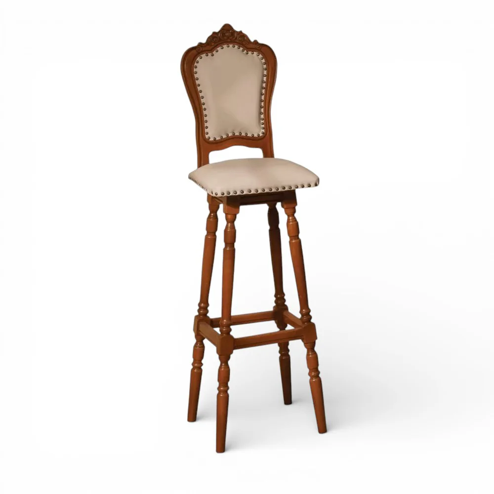 Luxusný rustikálny nábytok z masívneho dreva s ručnou rezbou: Barová stolička s opierkou CLEOPATRA