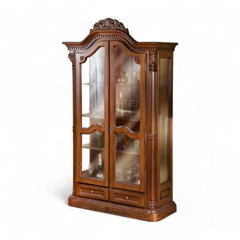 Luxusný rustikálny nábytok z masívneho dreva s ručnou rezbou: Vitrína 2 dv. CRISTINA