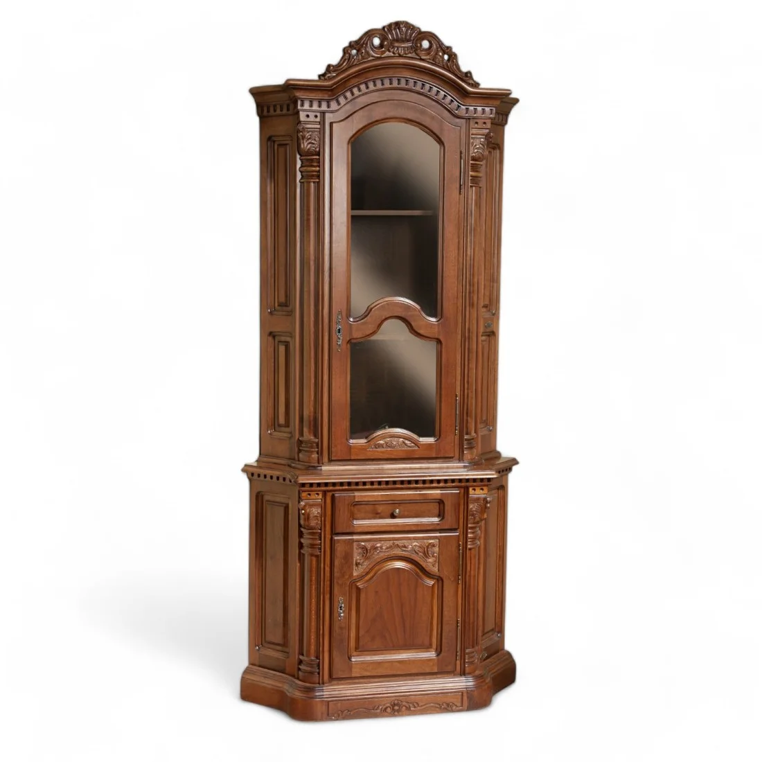 Luxusný rustikálny nábytok z masívneho dreva s ručnou rezbou: Vitrína roh CRISTINA