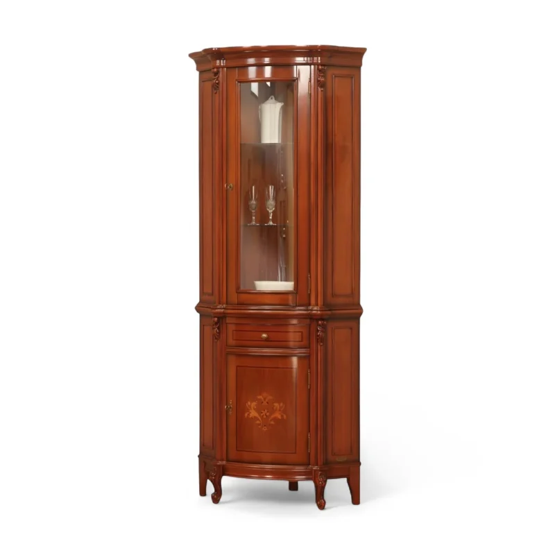 Luxusný rustikálny nábytok z masívneho dreva s ručnou rezbou: Komoda a vitrína roh. FIRENZE