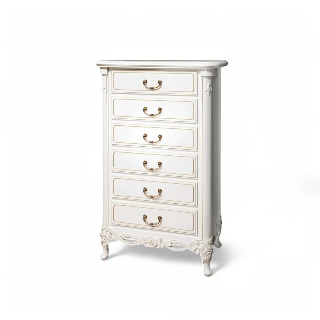 Luxusný rustikálny nábytok z masívneho dreva s ručnou rezbou: Komoda úzka 6š. FLORA