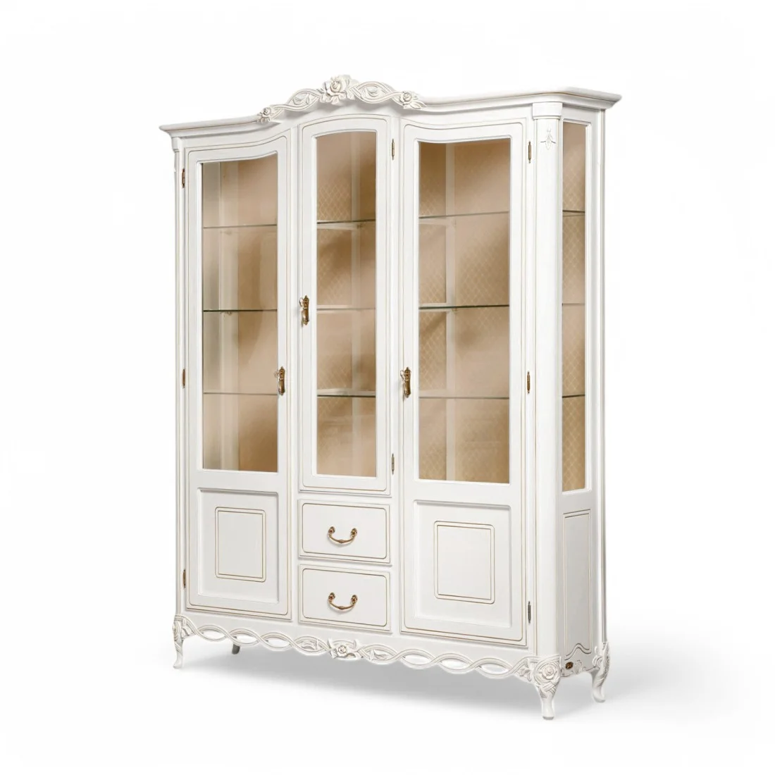 Luxusný rustikálny nábytok z masívneho dreva s ručnou rezbou: Vitrína 3dv. 2š. FLORA
