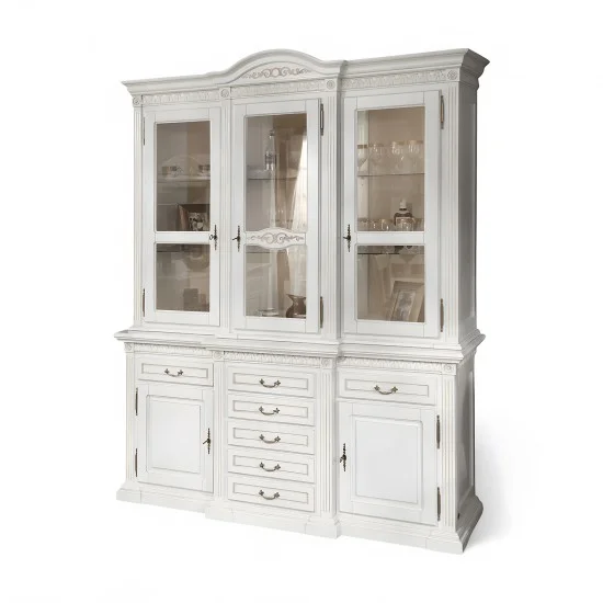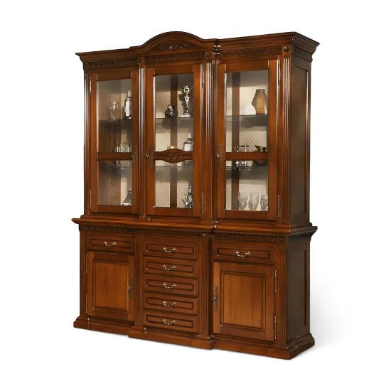 Luxusný rustikálny nábytok z masívneho dreva s ručnou rezbou:  Vitrína 5dv. 7š. VENETIA