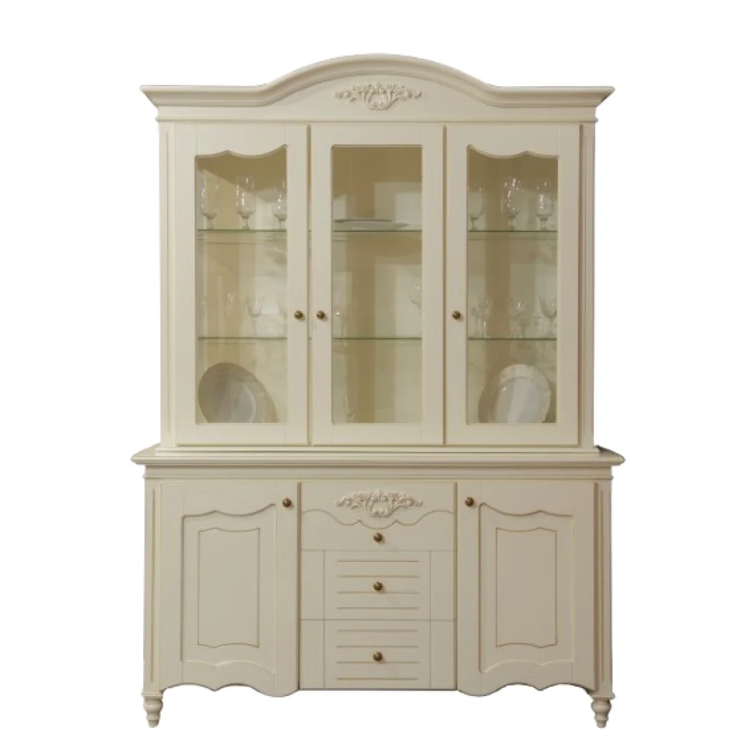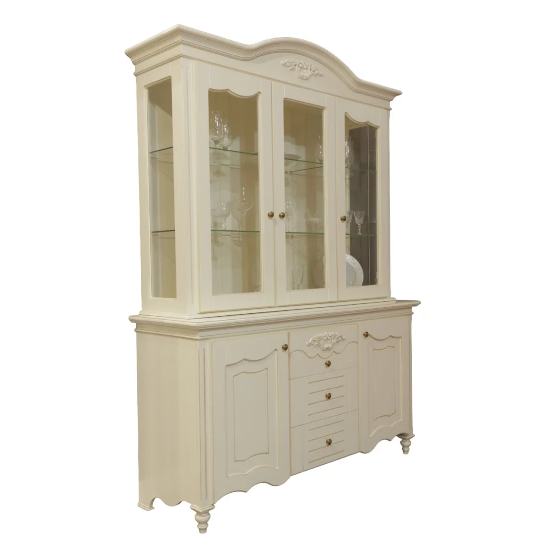 Luxusný rustikálny nábytok z masívneho dreva s ručnou rezbou: Komoda a vitrína 3dv.+3dv. YANA