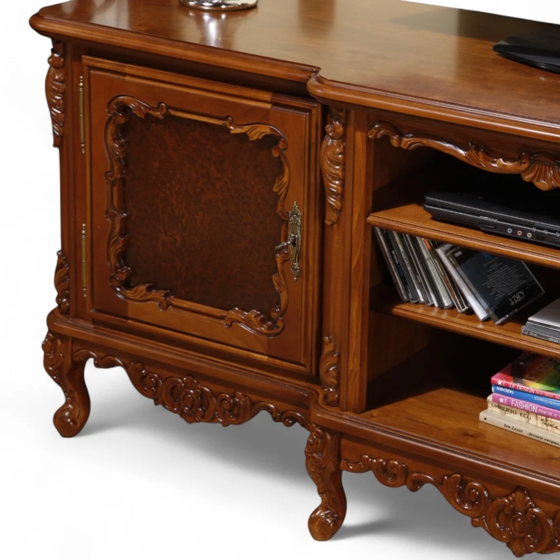 Luxusný rustikálny nábytok z masívneho dreva s ručnou rezbou: Komoda LCD CLEOPATRA