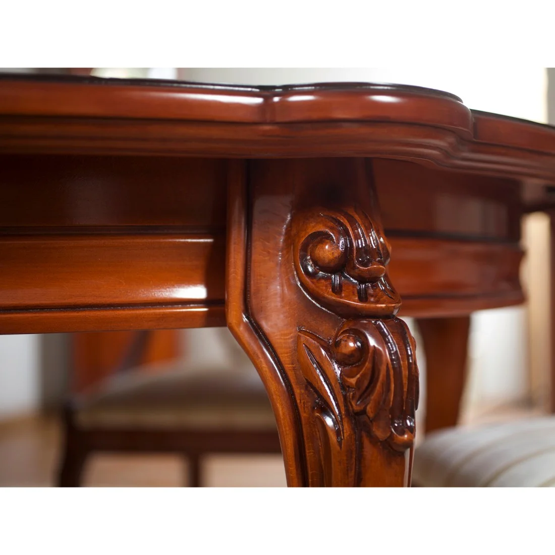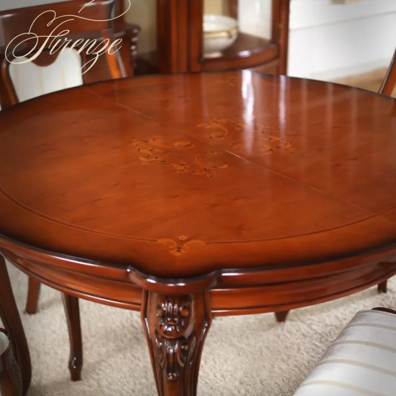 Luxusný rustikálny nábytok z masívneho dreva s ručnou rezbou: Stôl okrúhly rozťah. FIRENZE