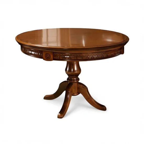 Luxusný rustikálny nábytok z masívneho dreva s ručnou rezbou: Stôl okrúhly rozťah. VENETIA