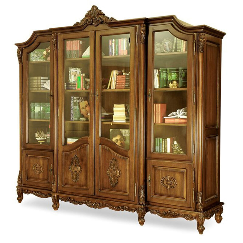 Luxusný rustikálny nábytok z masívneho dreva s ručnou rezbou: Knihovňa 4dv. REGAL