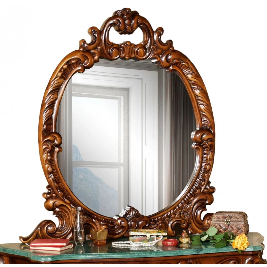 Luxusný rustikálny nábytok z masívneho dreva s ručnou rezbou: Zrkadlo na toaletný stôl CLEOPATRA LUX