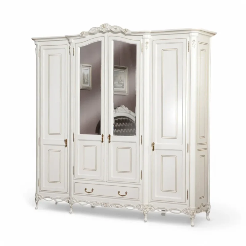 Luxusný rustikálny nábytok z masívneho dreva s ručnou rezbou: Skriňa 4dv. 1š. FLORA
