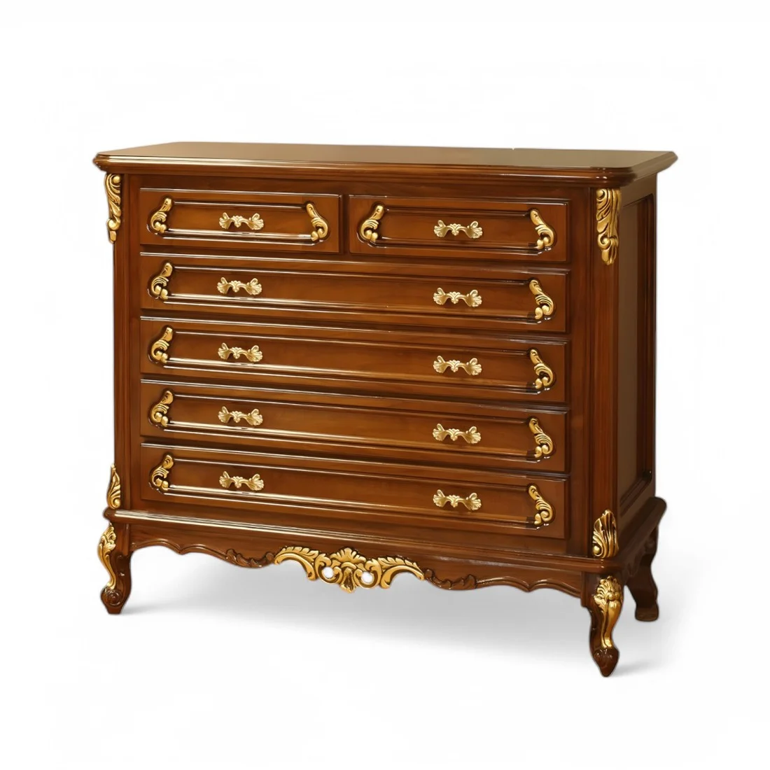 Luxusný rustikálny nábytok z masívneho dreva s ručnou rezbou: Komoda 6š. ROYAL