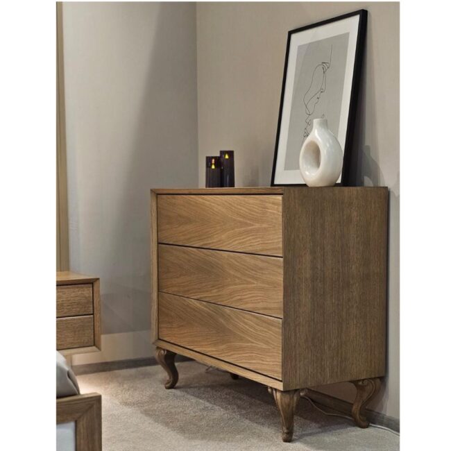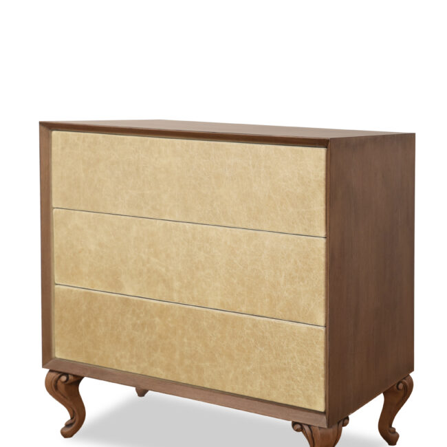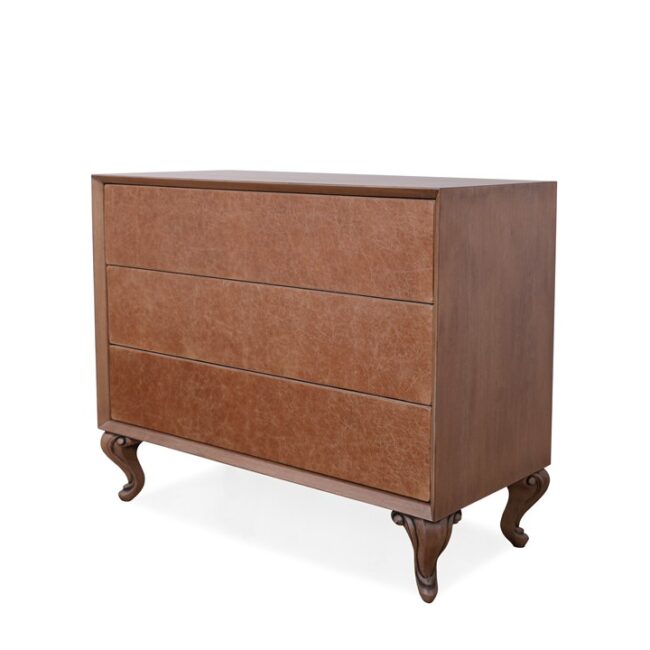 Luxusný rustikálny nábytok z masívneho dreva s ručnou rezbou: Komoda 3š. VENETO koža