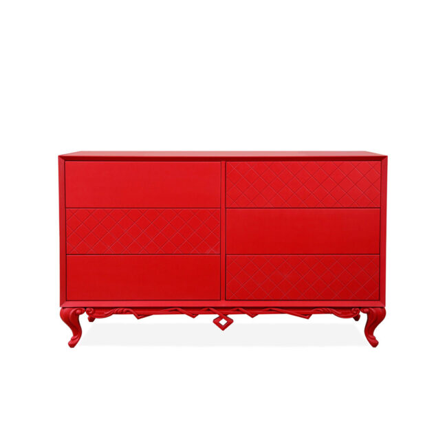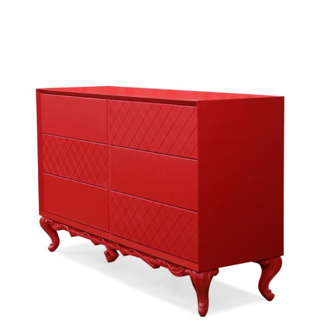 Luxusný rustikálny nábytok z masívneho dreva s ručnou rezbou: Komoda 6š. VENETO red