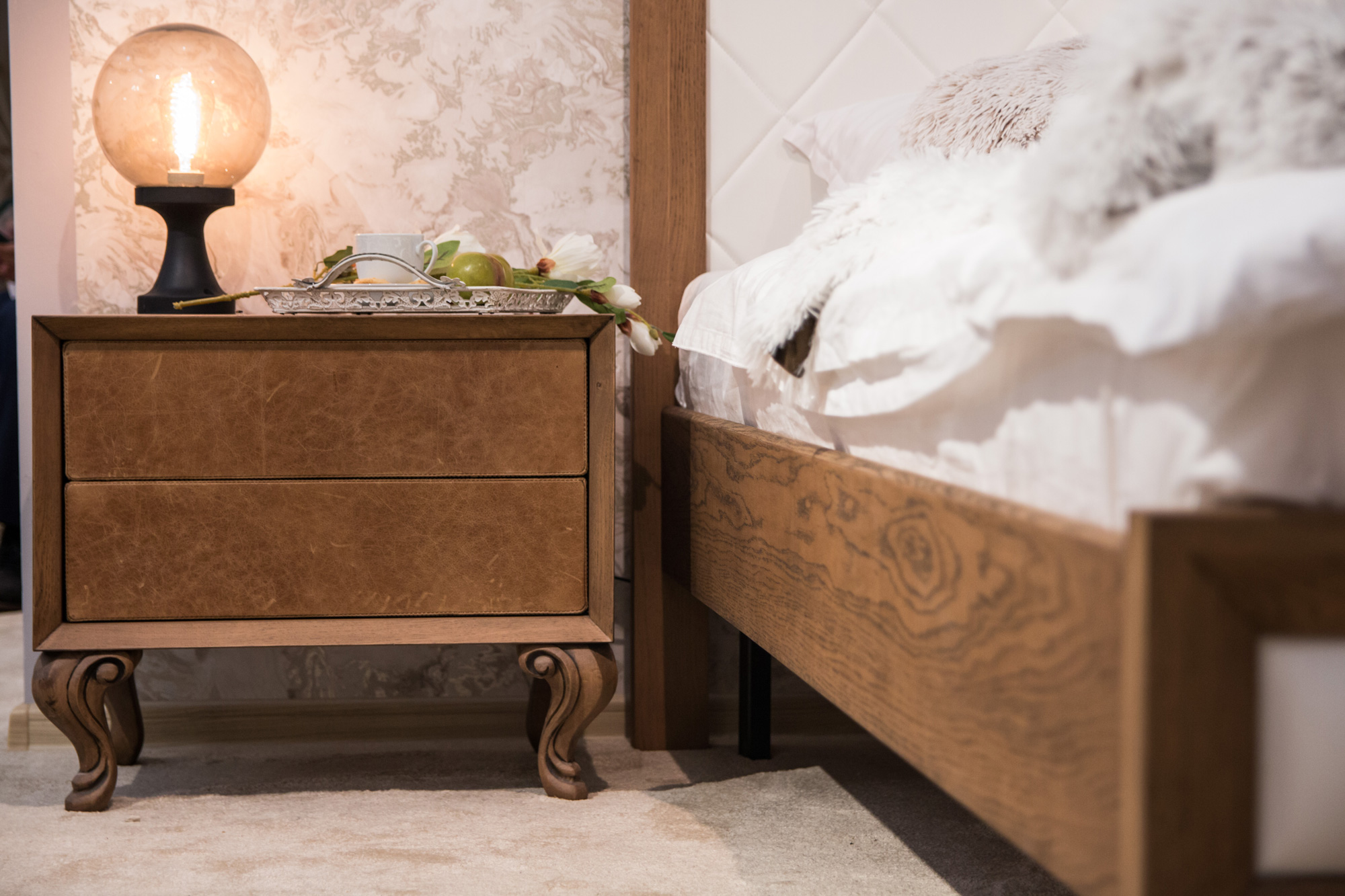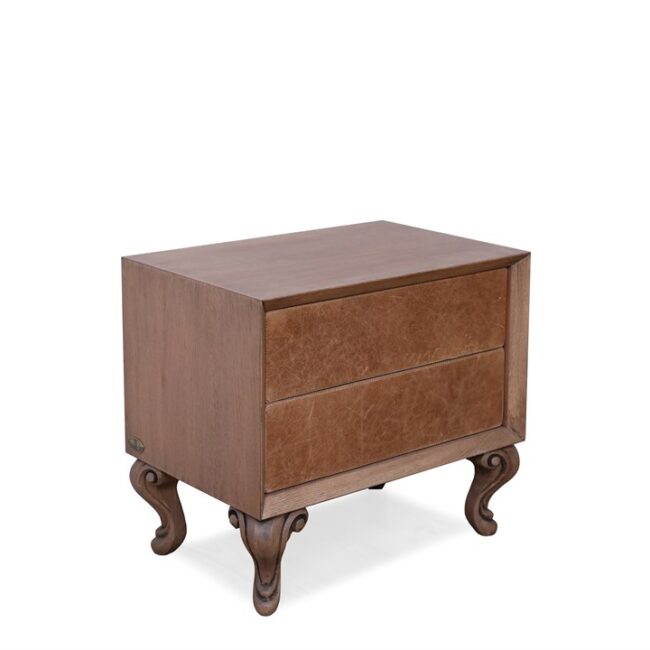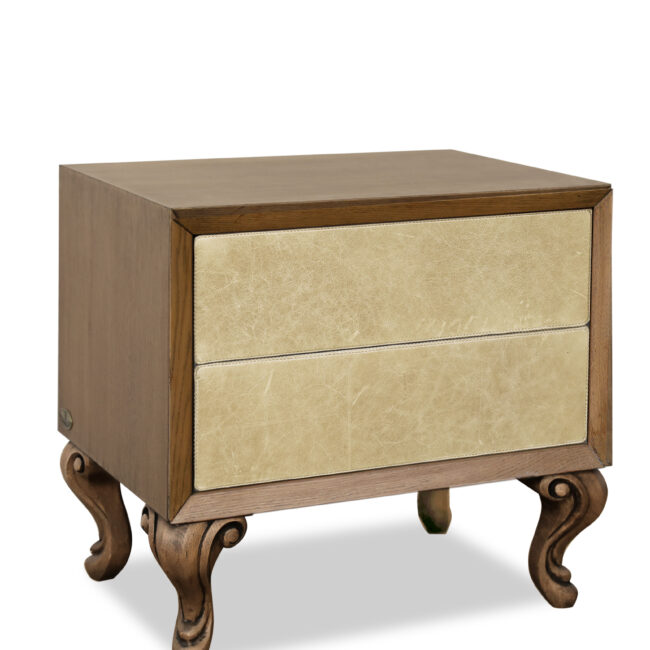 Luxusný rustikálny nábytok z masívneho dreva s ručnou rezbou: Nočný stolík VENETO koža