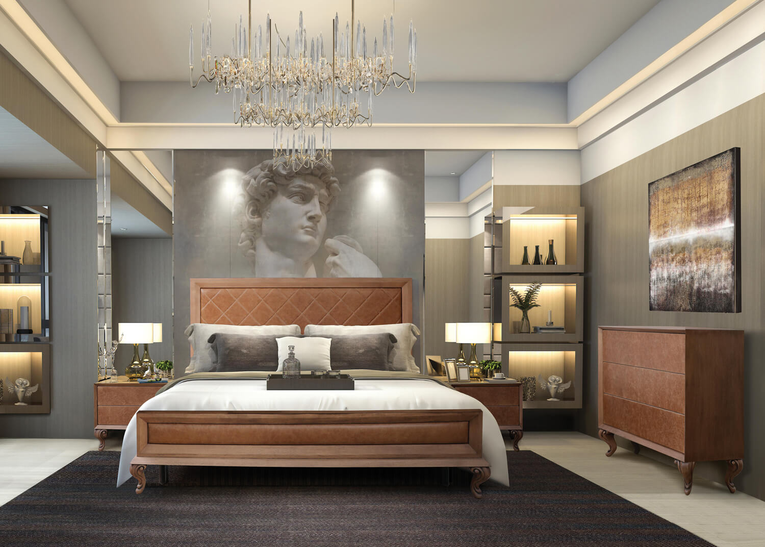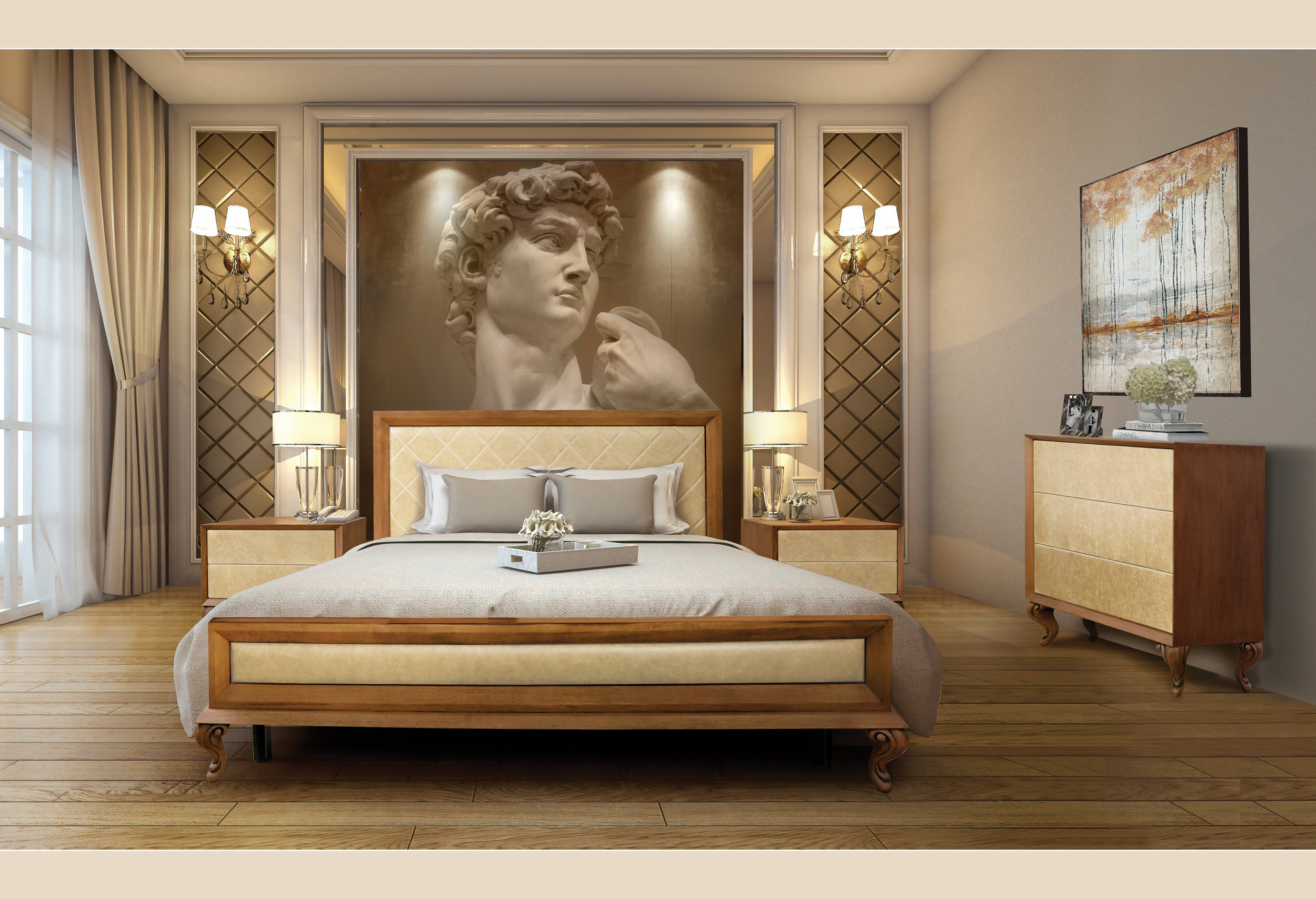 Luxusný rustikálny nábytok z masívneho dreva s ručnou rezbou: Posteľ 1800 VENETO koža